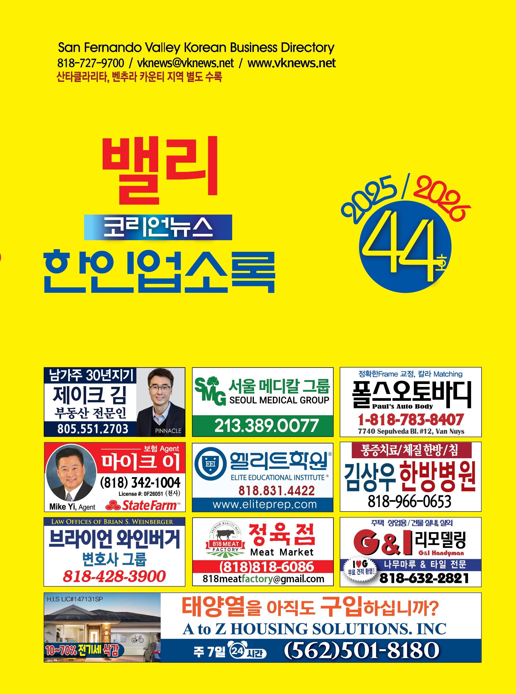 밸리 최고의 한인 매거진, 샌퍼난도 밸리 업소록, 벤츄라 카운티 업소록, 산타 클라리타 업소록, 깔끔하고 세련된 디자인과 친절한 서비스를 제공하는 40년 전통 밸리 최고의 한인 매거진 & 업소록, 귀하의 비지니스와 고객들 사이의 징검다리가 되어 드리겠습니다.